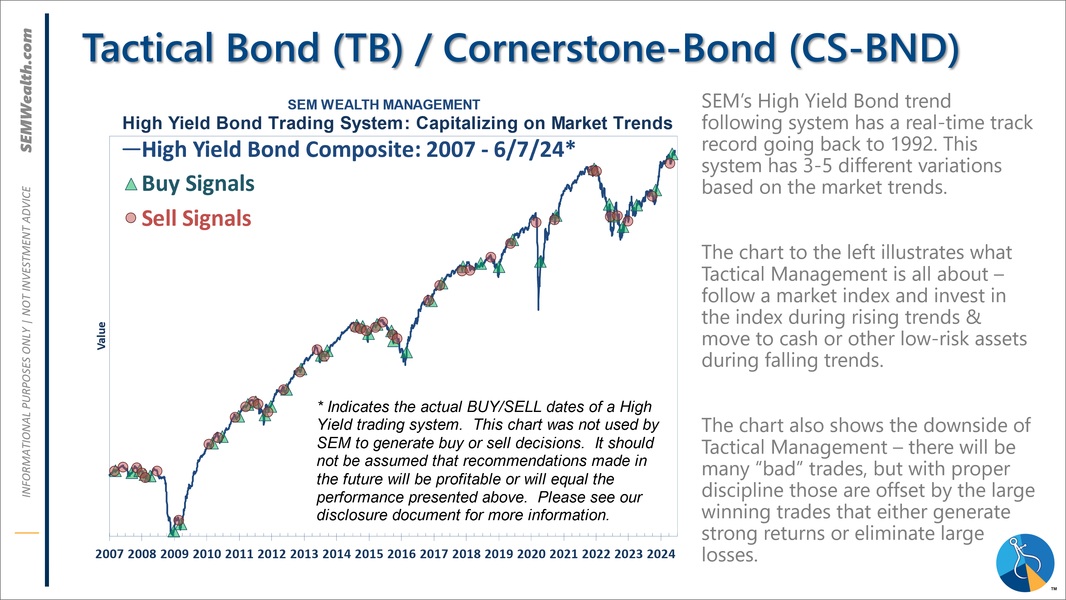-Tactical High Yield had a partial buy signal on 5/6/24, reversing some of the sells on 4/16 & 17/2024 - the other portion of the signal remains on a sell as high yields continue to oscillate.