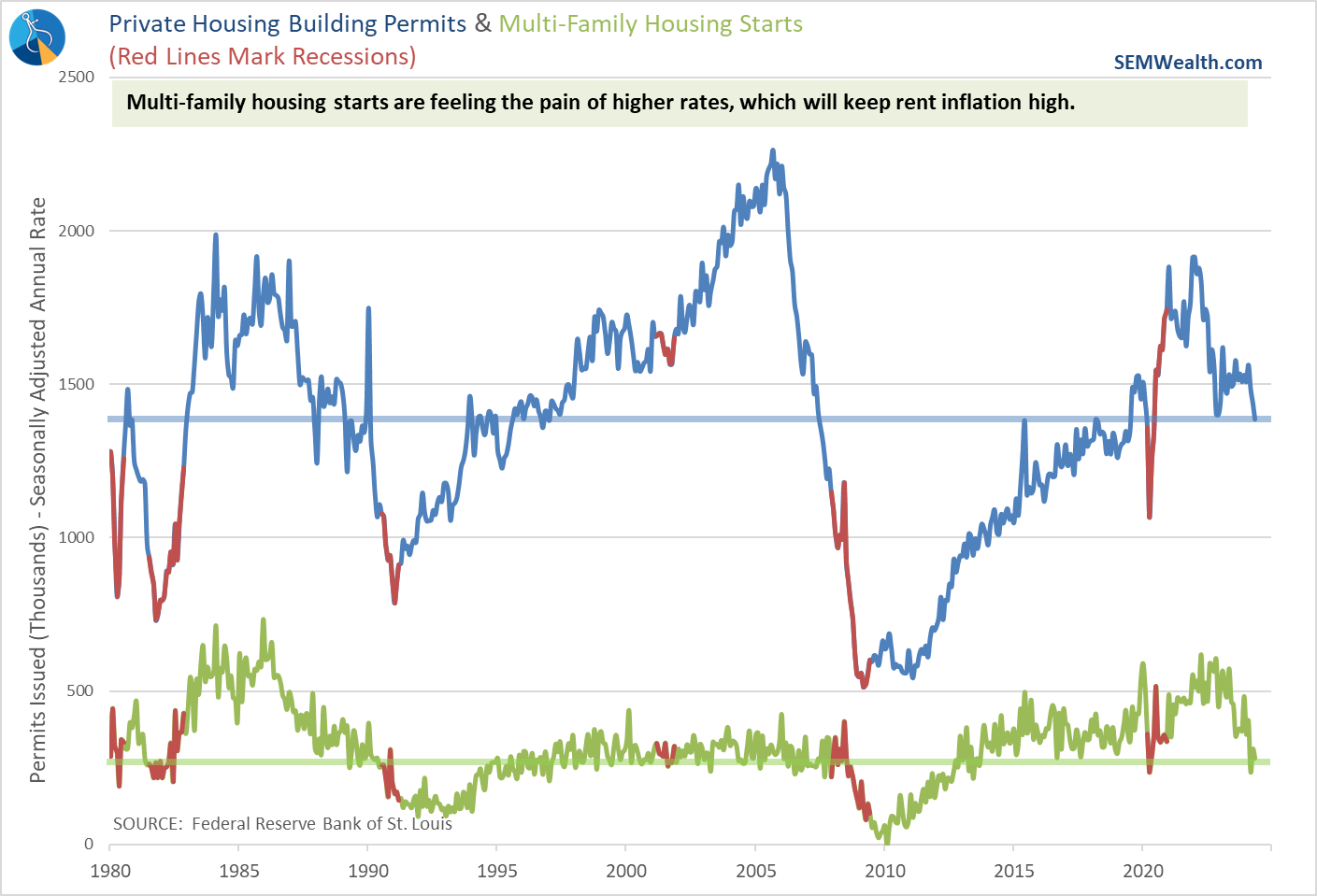 Last week we saw some disappointing building permit numbers. Long-time readers know this is one of my favorite indicators because it both indicates enthusiasm for the future economic environment and generates a snowball of economic activity both as the house is built and when they are completed. The market greeted these bad numbers as good news as the thought process is it will allow the Fed to cut interest rates soon. Experience and history tells me to be careful what you wish for. The Fed has a TERRIBLE track record of preventing recessions and a great track record of overinflating bubbles only to burst them.