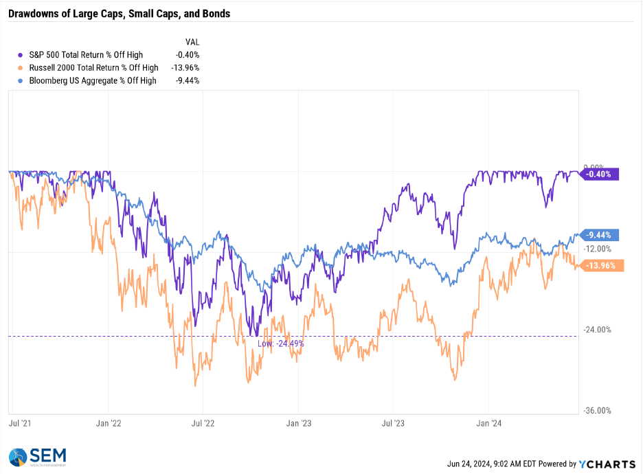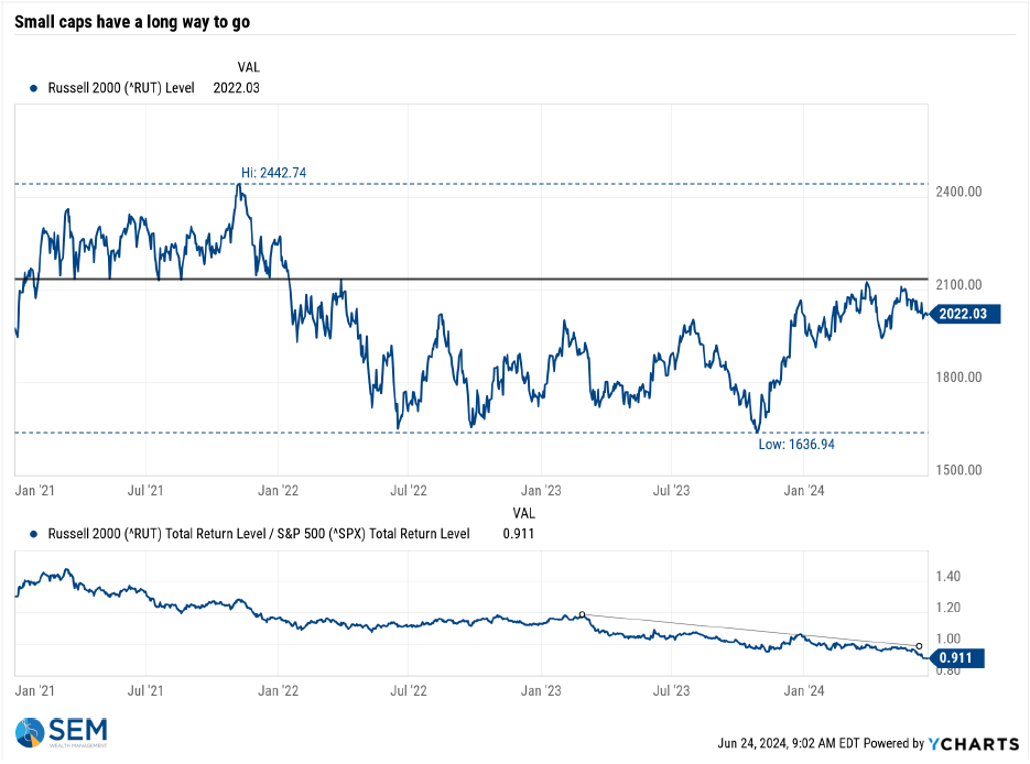 With large caps up and small caps down last week, the relative performance gap only got worse.