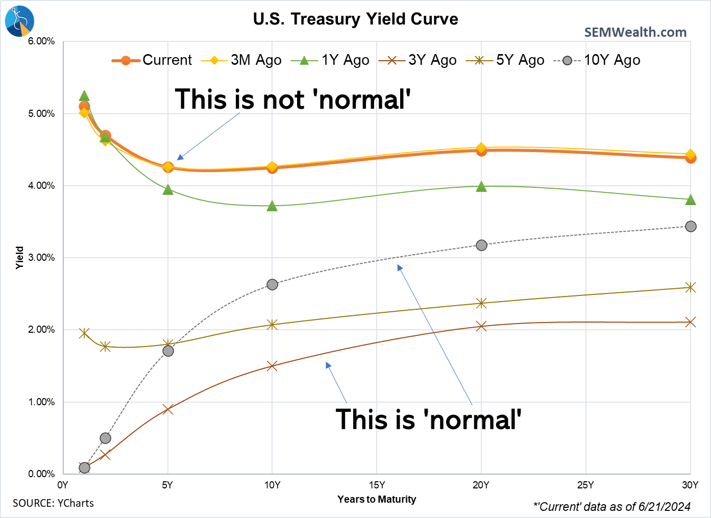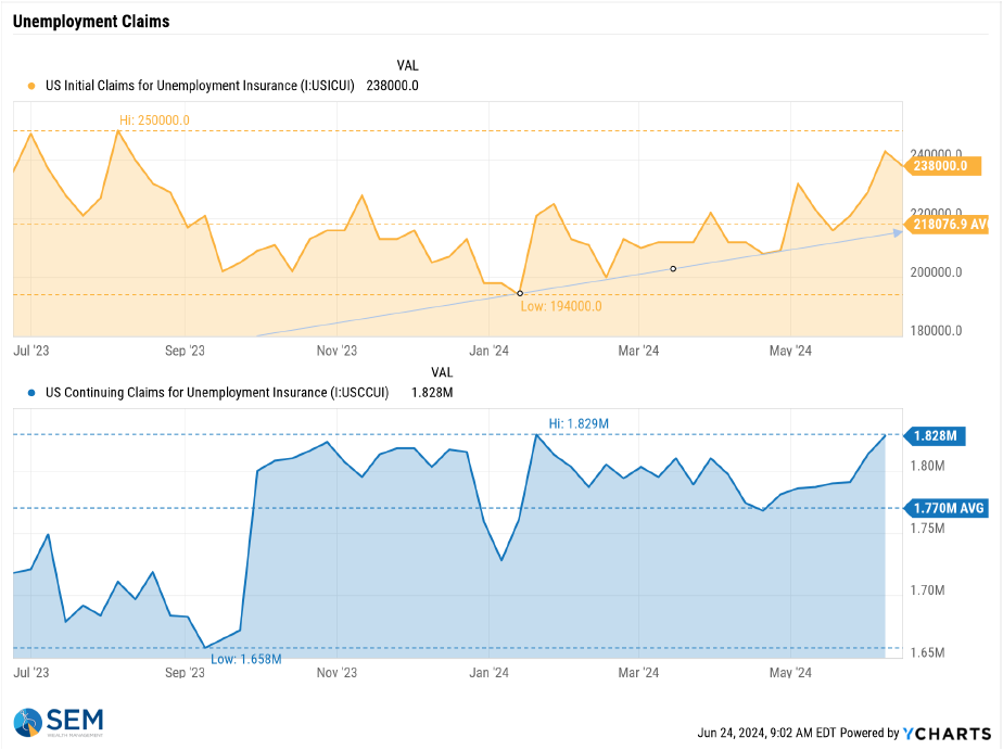 We need to see either short-term rates decline dramatically or long-term rates to rise to get things back to normal. The market is betting the economy is cooling enough to let the Fed start cutting rates, but as I said above, be careful what you wish for. Simply cutting rates will not magically unlock the economy, especially if it leads to a resumption of inflation. The labor market does appear to be cooling, but that is not necessarily a good thing for the LONG-TERM prospects of our economy.