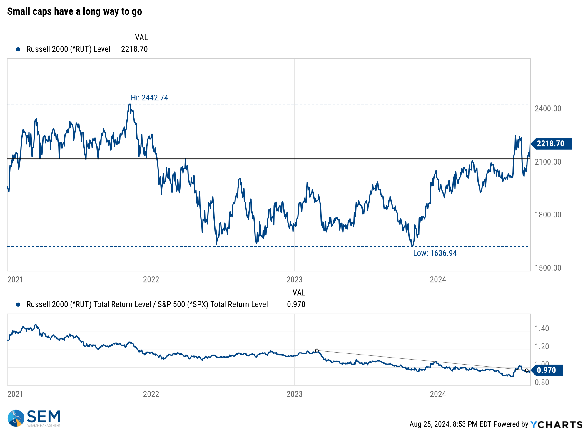 Small caps had a very strong day on Friday. If the Fed really is going to save us from a recession AND long-term rates also come down, that could be good news for small caps.
