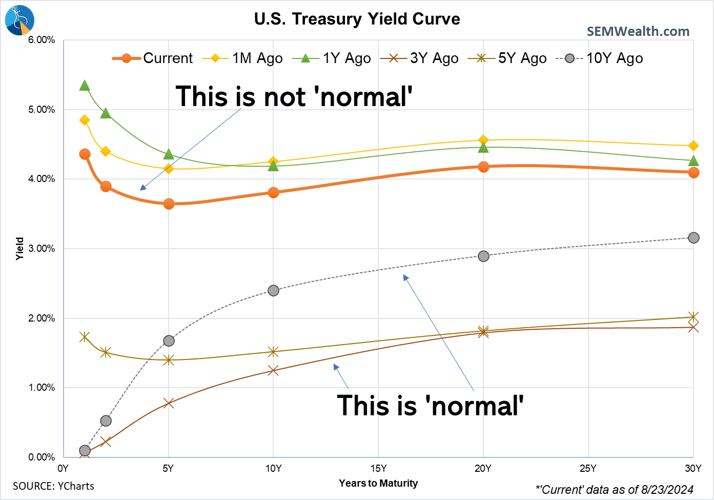 The yield curve is still out of whack. With long-term rates moving down so aggressively, you wonder how much the Fed would have to slash rates on the short side to 'normalize' the yield curve. If they have to do that what will the impact be on inflation?