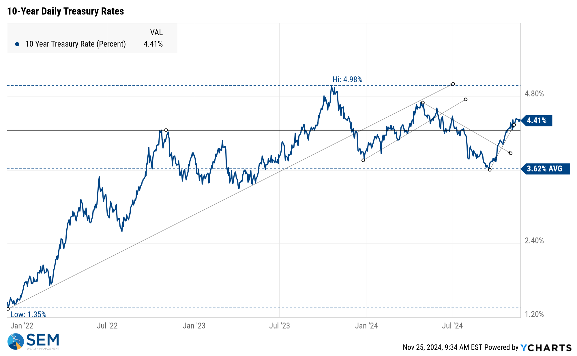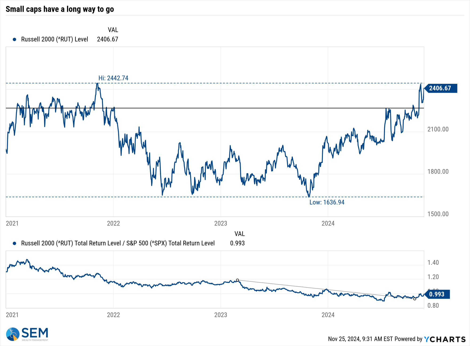 We all know the President-elect has made a career of being a fantastic salesman and his chief promoter. One key in sales is to not let the data get in the way of your message. I thought today rather than critiquing the endless "expert" commentaries and webinars discussing 2025 and beyond under Trump which continue to flood my inbox, I'd show a few charts to remind us it's not one president, one Congress, or one party which can change the direction of the stock market (or economy). I don't do this to criticize President Trump, but to remind everyone that things could be great or they could be terrible, or more likely somewhere in between REGARDLESS of who is president.