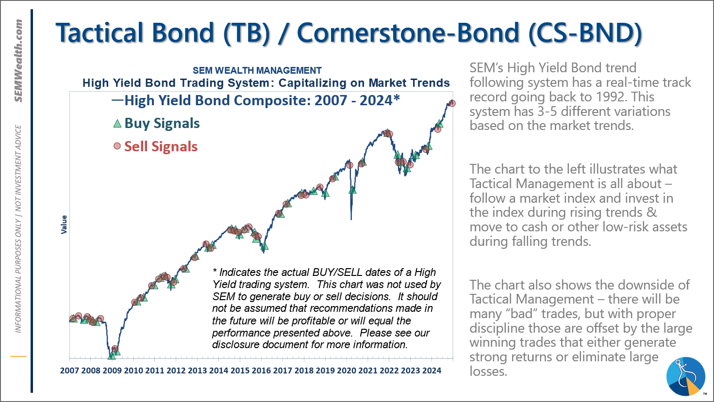 -Tactical High Yield reentered the high yield bond market on 1/27/25 after about 5 weeks on the sidelines. We had added a 30% position in floating rate bonds on 12/6/24, which currently have a 9% yield compared to a 6% yield in high yields and 4.6% in money markets.