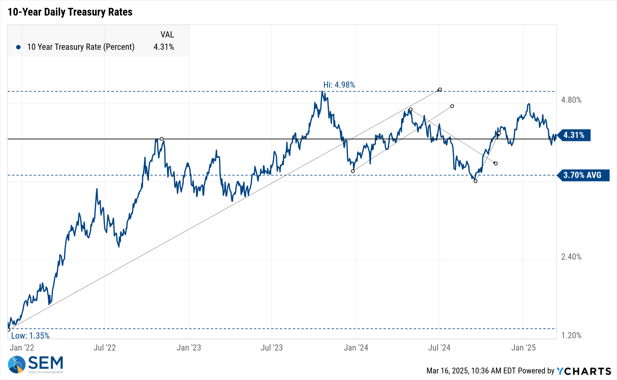 Treasury Bonds also have not given us a clear signal on what to expect for the economy with the 10-year yield essentially back to where we were in December, Last July, late 2023, and late 2022.