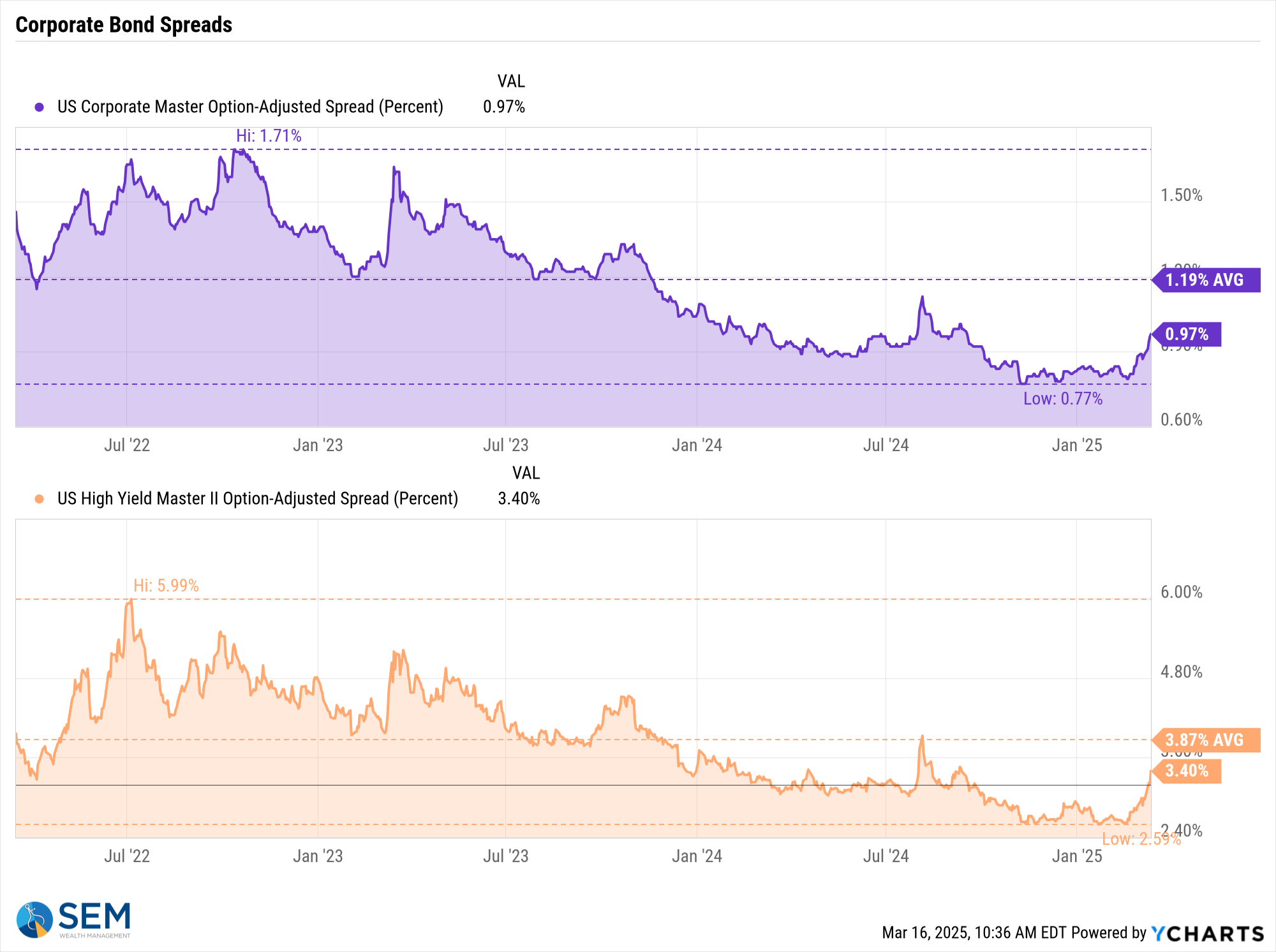 Yes, spreads have moved up for high yield bonds, nearly 80 basis points, but compared to where we were in 2022, they are still quite low.