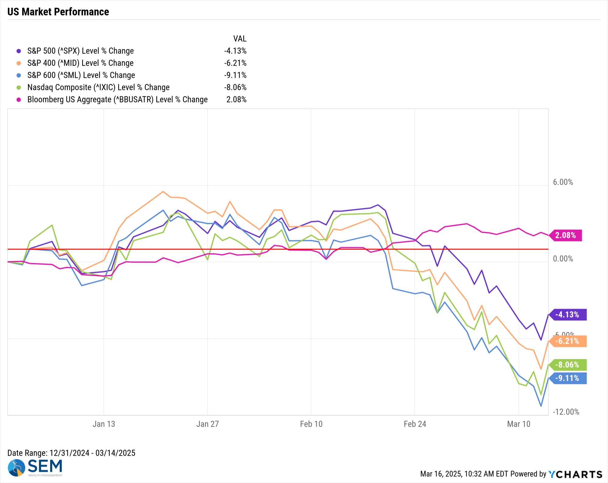 Normally, we include the "Market Charts" near the end of each week's blog, but since the news of the week is the "correction" in the S&P 500, that is the main focus this week.