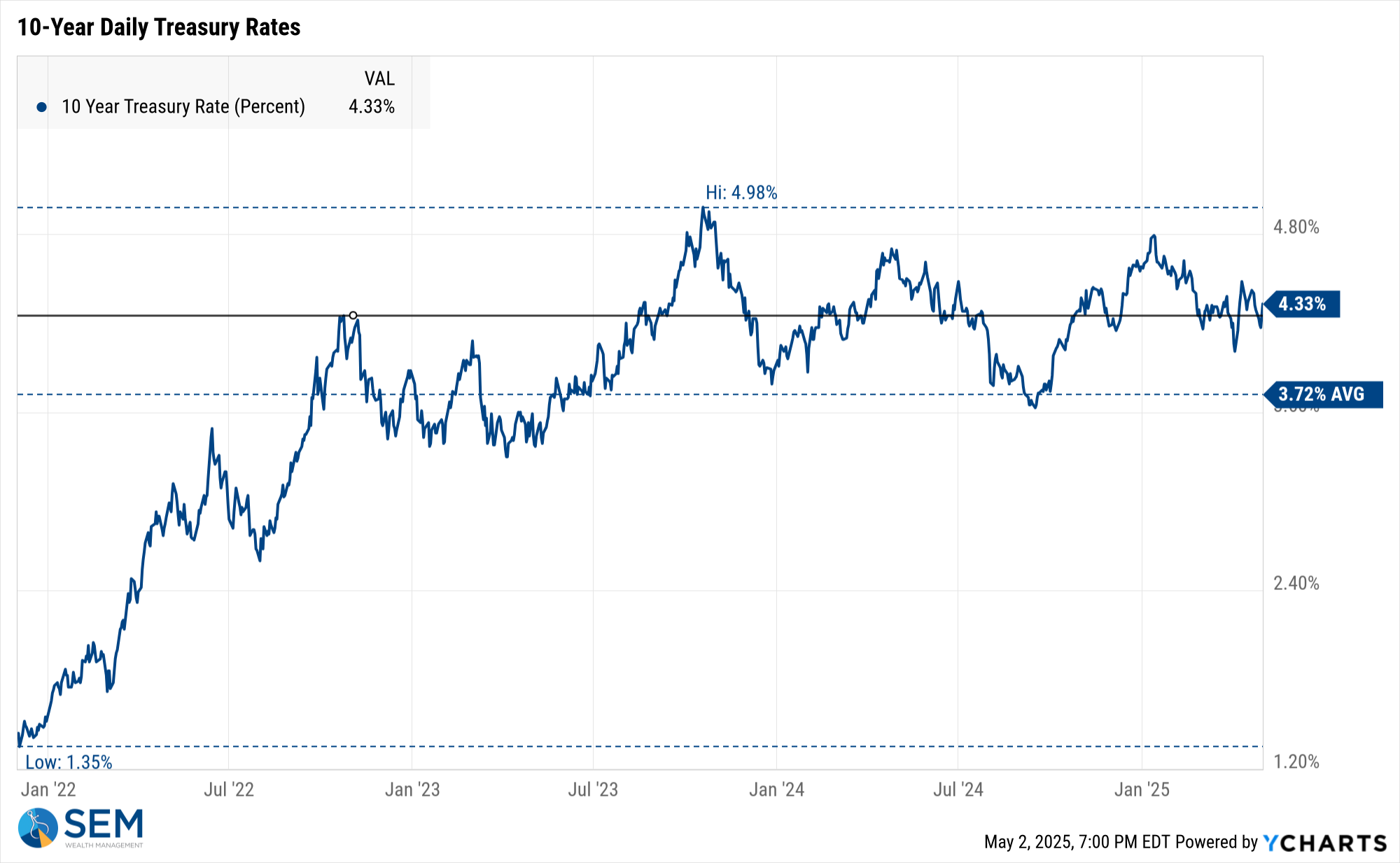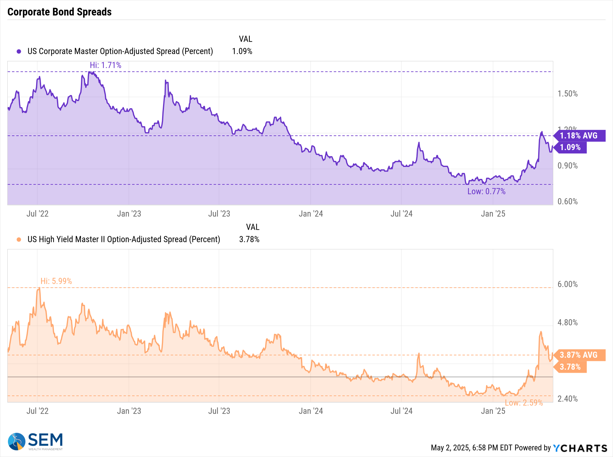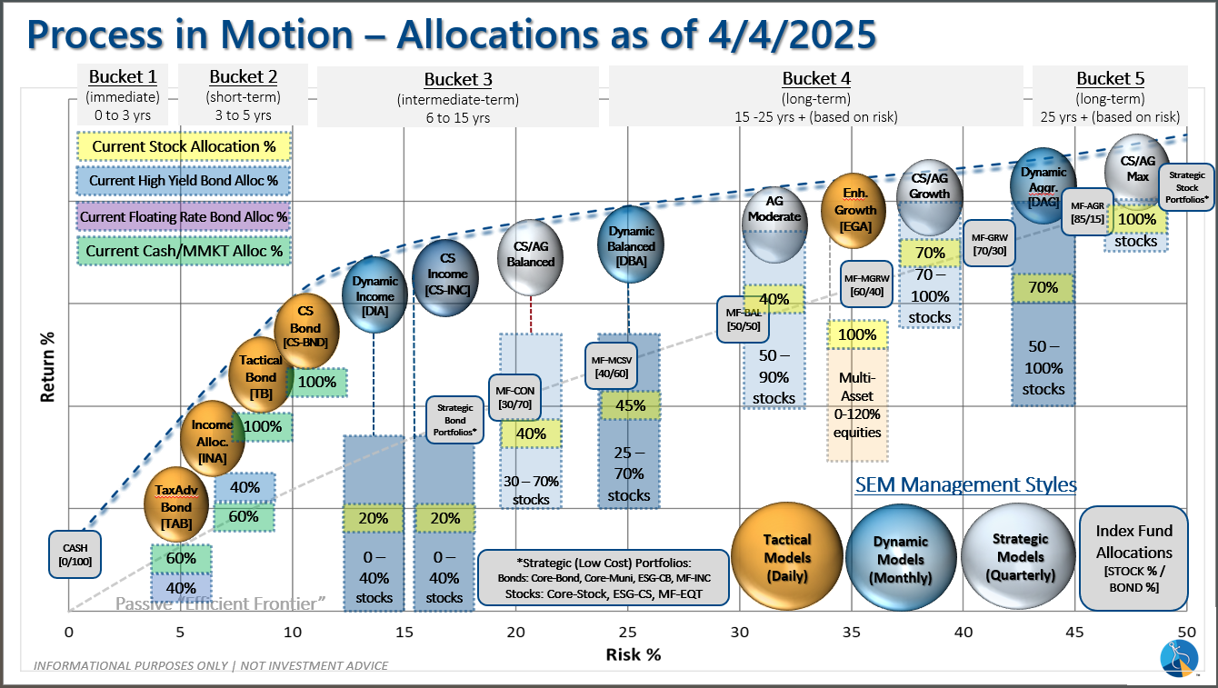 -Tactical High Yield sold high yield bonds on 4/3/25 after 9 weeks in these funds. These models bought back in on 4/24. All proceeds were moved to money market or short-term bonds, with a yield around 4.1% in money markets.