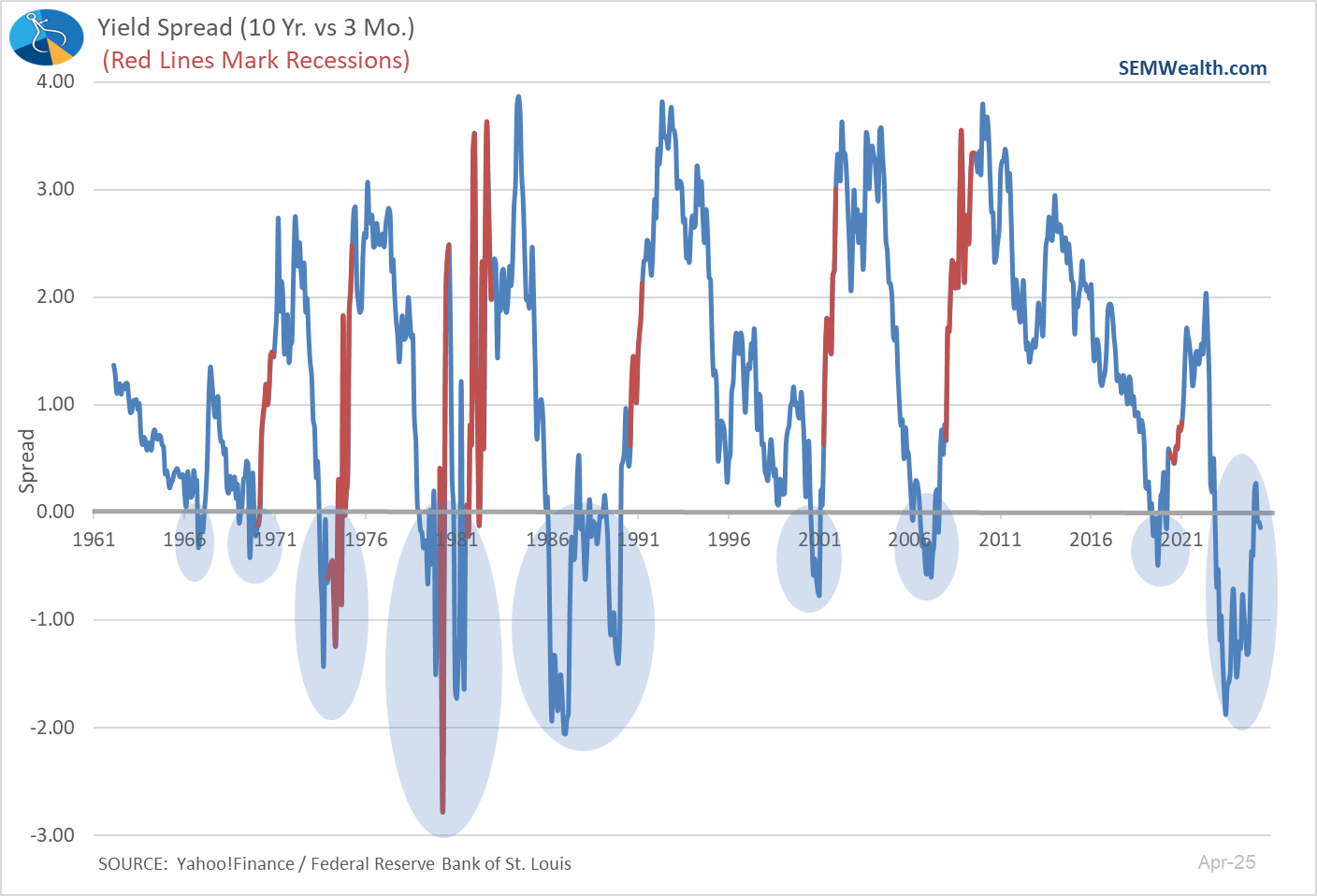 We've also seen the bond market again show signs of concern, with the yield curve again inverting, like it did ahead of the 2020 recession and the 2 consecutive quarters of negative GDP in 2022.