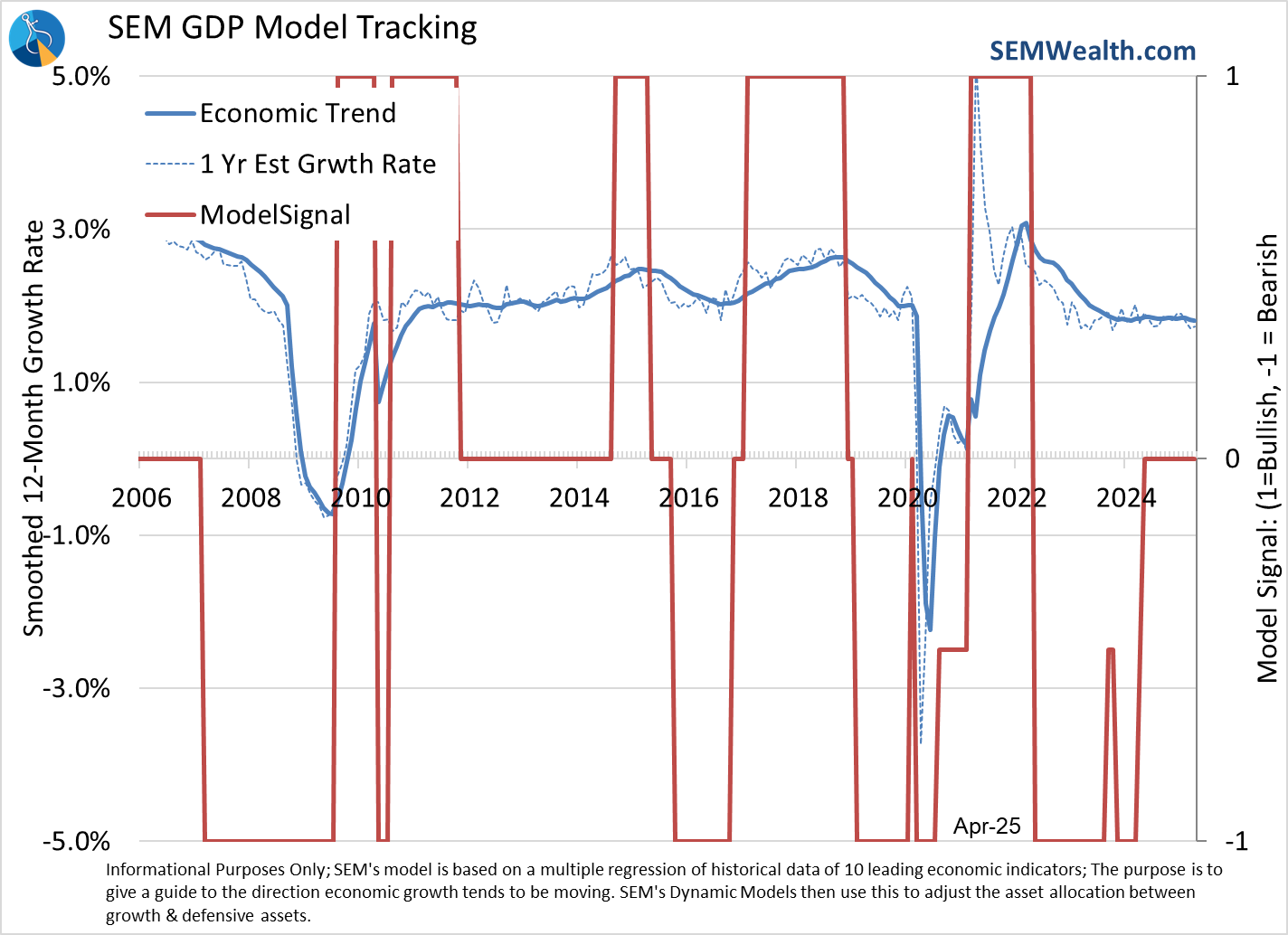 It's obviously still too early to tell what will happen and as I mentioned last week, a lot can change with a single Truth Social post from the President. That leaves us to take a look at the data. We haven't really seen too much in the way of actual new tariffs levied, but we have had some. We just wrapped up the month for SEM's Economic Model and for now we stand at the same place we have since last June. Not terrible, but also not great.
