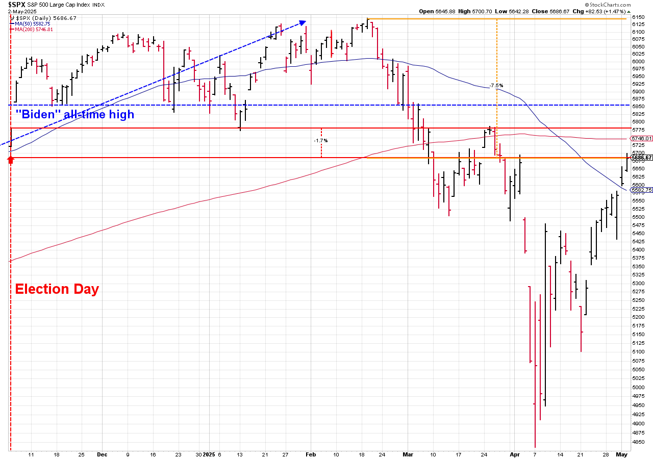 Stocks are now down less than 2% since election day, although they are still 7.5% off the highs from late February.
