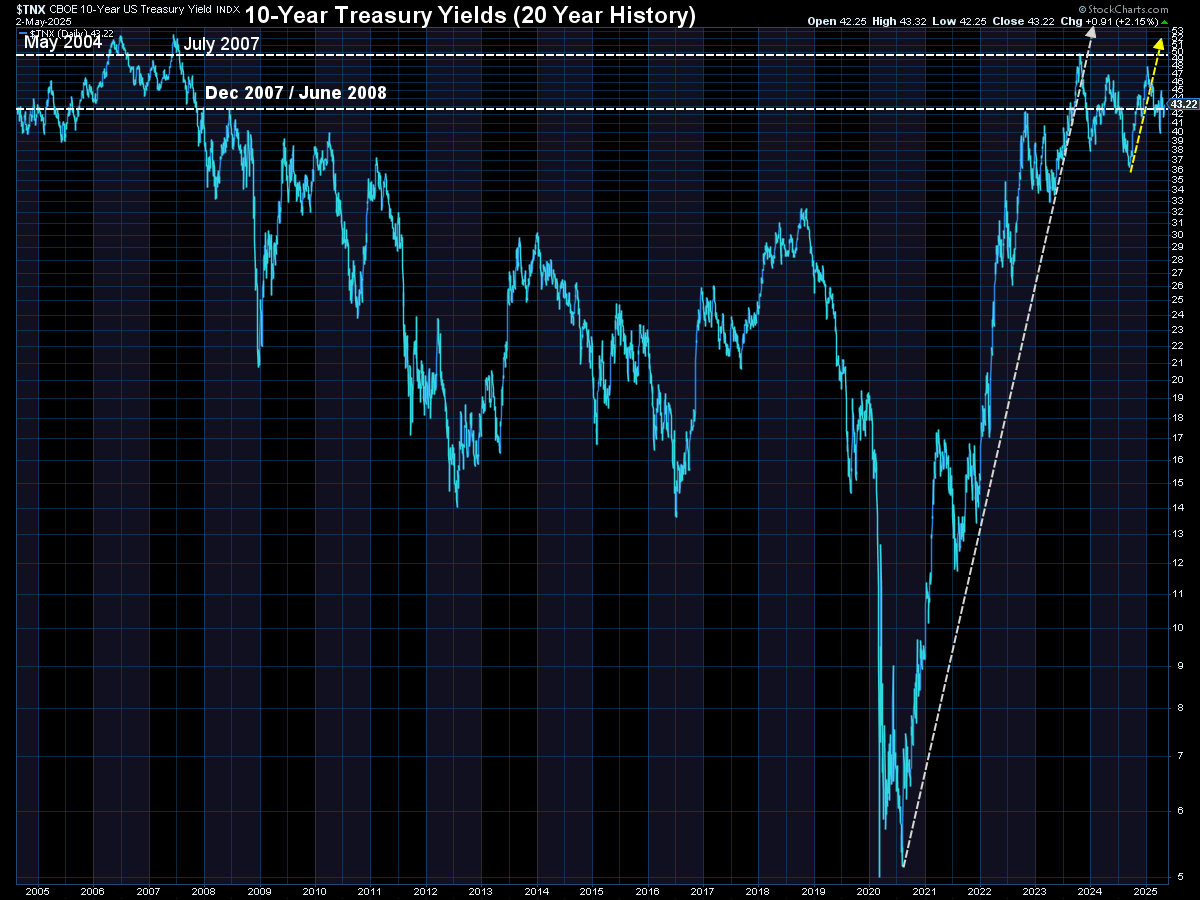 Looking at the shorter-term, we can see bond yields continuing to stabilize, remaining in the range they've been in since the middle of 2023.