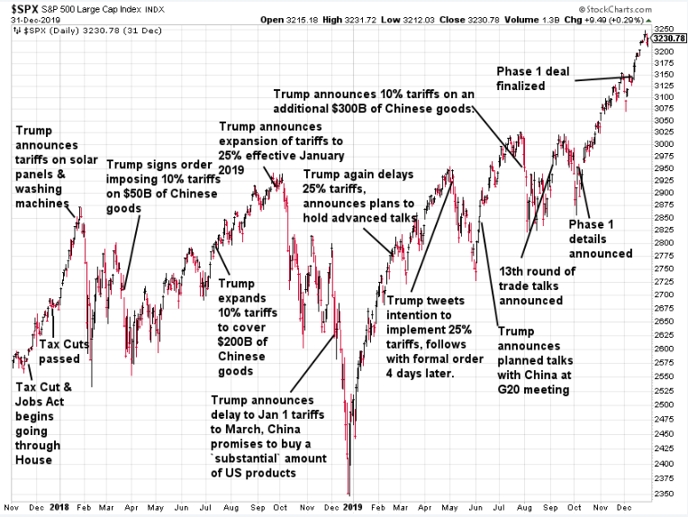 After falling below the post-election opening price last week, the messaging out of the Trump camp over the weekend was the tariffs would only be implemented on products which oppose a direct threat to "national security". This sparked a nice rally, but 2 days later the president back-tracked on that messaging claiming he never said that. Shortly thereafter, it was reported that President Trump could use a "national emergency" declaration to implement new tariffs, circumventing Congress and allowing him to ignore any trade agreements already in place. Stocks were selling off already that day before the next piece of tariff related news hit the wires.................