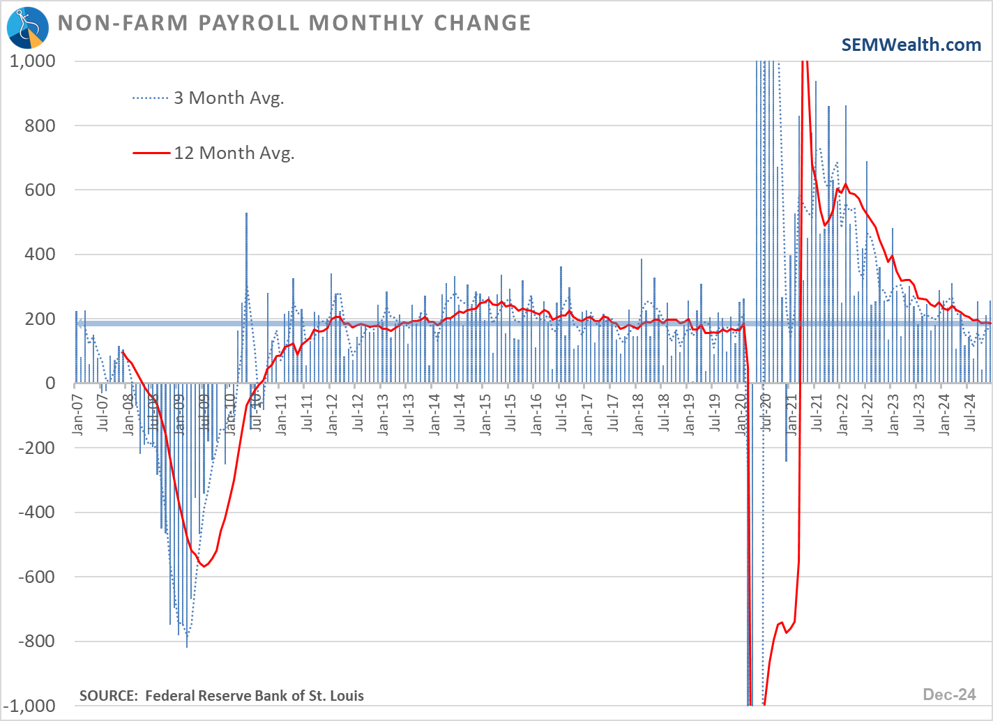 - The estimated number of new jobs was around 186,000 for December.