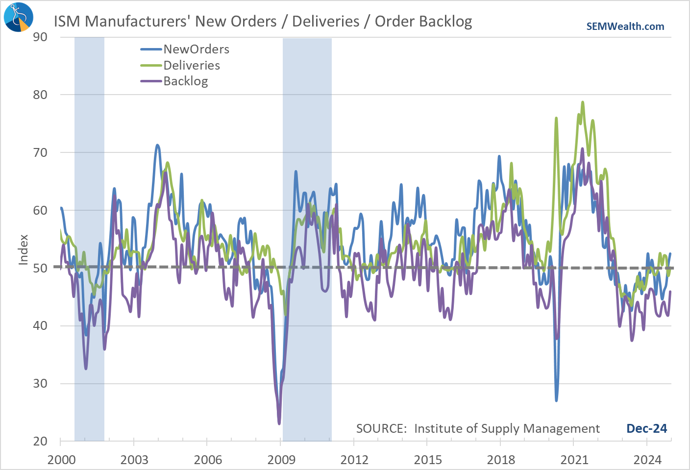 One of the weak points since 2022 has been manufacturing, that however has turned with the leading 'new orders' indicator now back in 'expansion' territory.