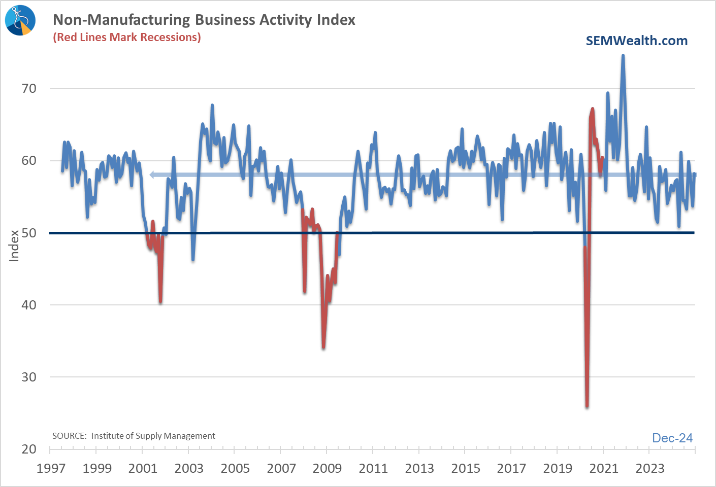 Another recent weak spot as the service sector, but that too has reversed to the upside.