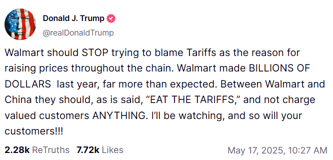 Wal-Mart and Target both warned last week that they are struggling to forecast future sales and earnings due to the trade-war. Wal-Mart also warned they may need to start increasing prices due to tariffs as even the current 30% tariffs on China are too high for them to absorb.