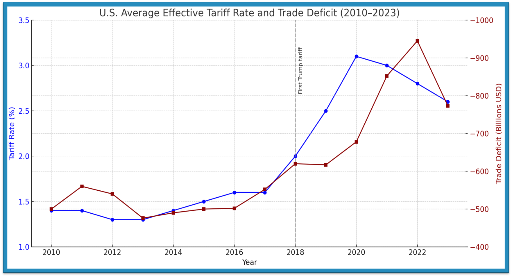 Will this work? What will be the final outcome? Will we actually flip the trade deficit to a surplus? Nobody knows. What we do know is the average tariff rate will be significantly HIGHER going forward AND the 2018-2020 tariffs implemented by Trump the first time around somehow seemed to INCREASE our trade deficit.