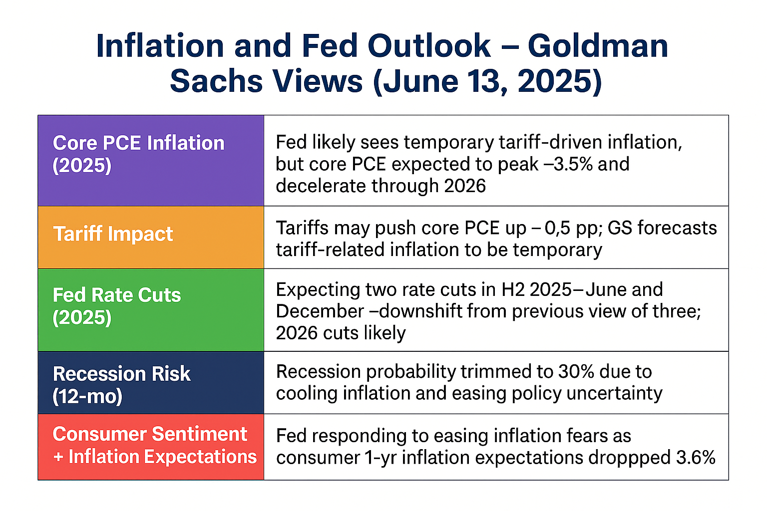 - Goldman Sachs’ take: They see up to 0.5 percentage point upside in Core PCE from tariffs, but expect the impact to fade in 2026.