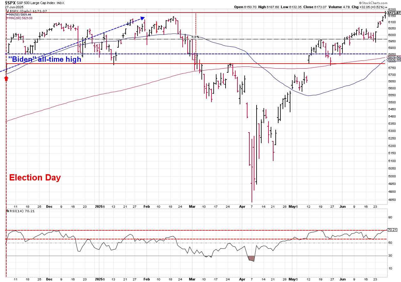 Rolling the RV out of the misty Pacific Northwest felt like switching channels from a 4K Nature documentary to Old Western movies. One day we were gawking up at 300-foot redwoods in 58-degree fog; two days later we cracked open the door in Reno to 97-degree desert gusts. The market delivered a similar climatic whiplash last week: what started as a cautious grind higher morphed into an all-out risk-on sprint, ending with the S&P 500 at a fresh record 6,173 on Friday.