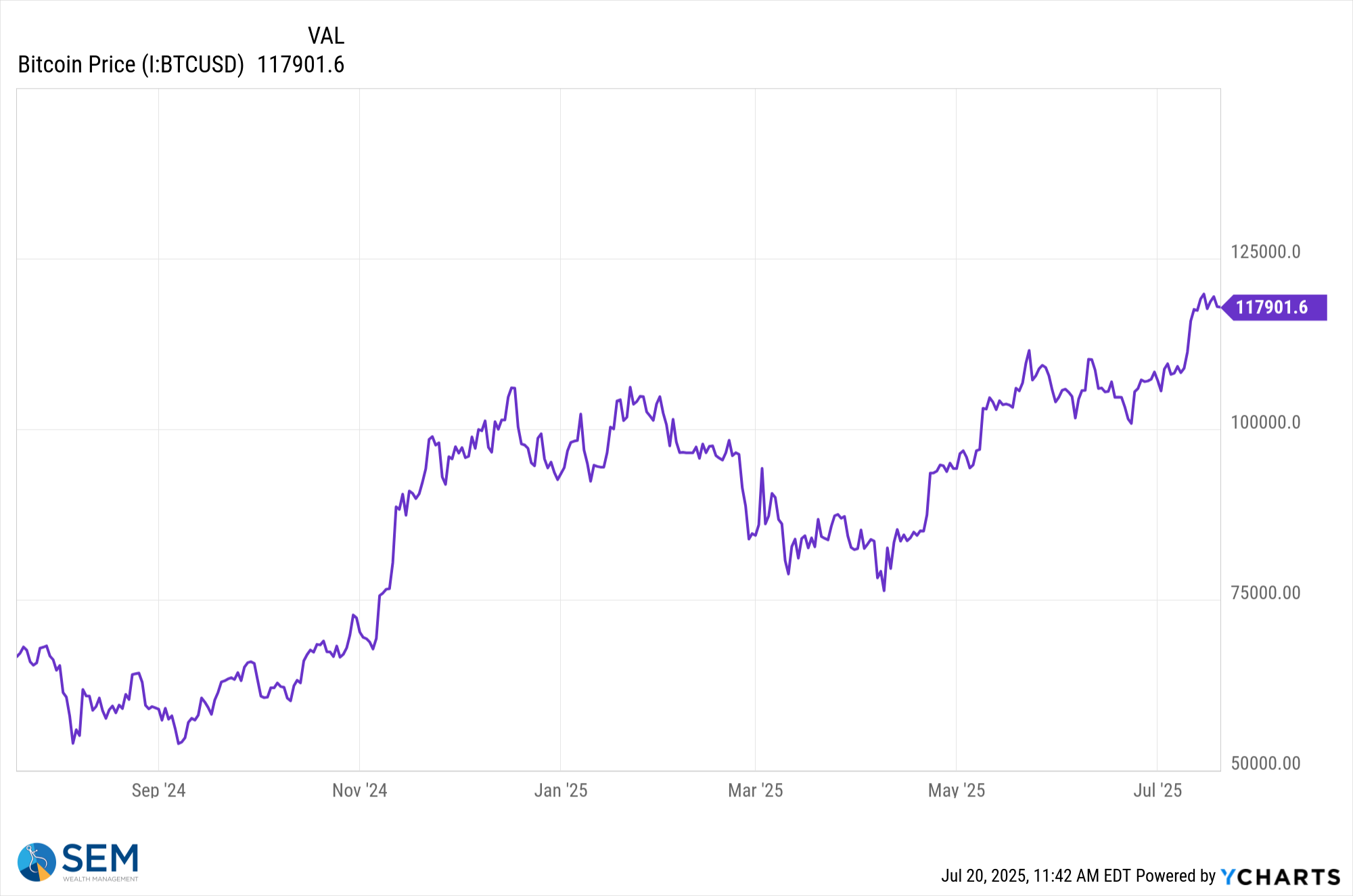 Headline: All week, Bitcoin and other crypto-related assets hit new all-time highs amid anticipation of “Crypto Week” in Congress and regulatory clarity from the GENIUS Act (Sources: New York Post, Reuters, CoinDesk, MarketWatch).