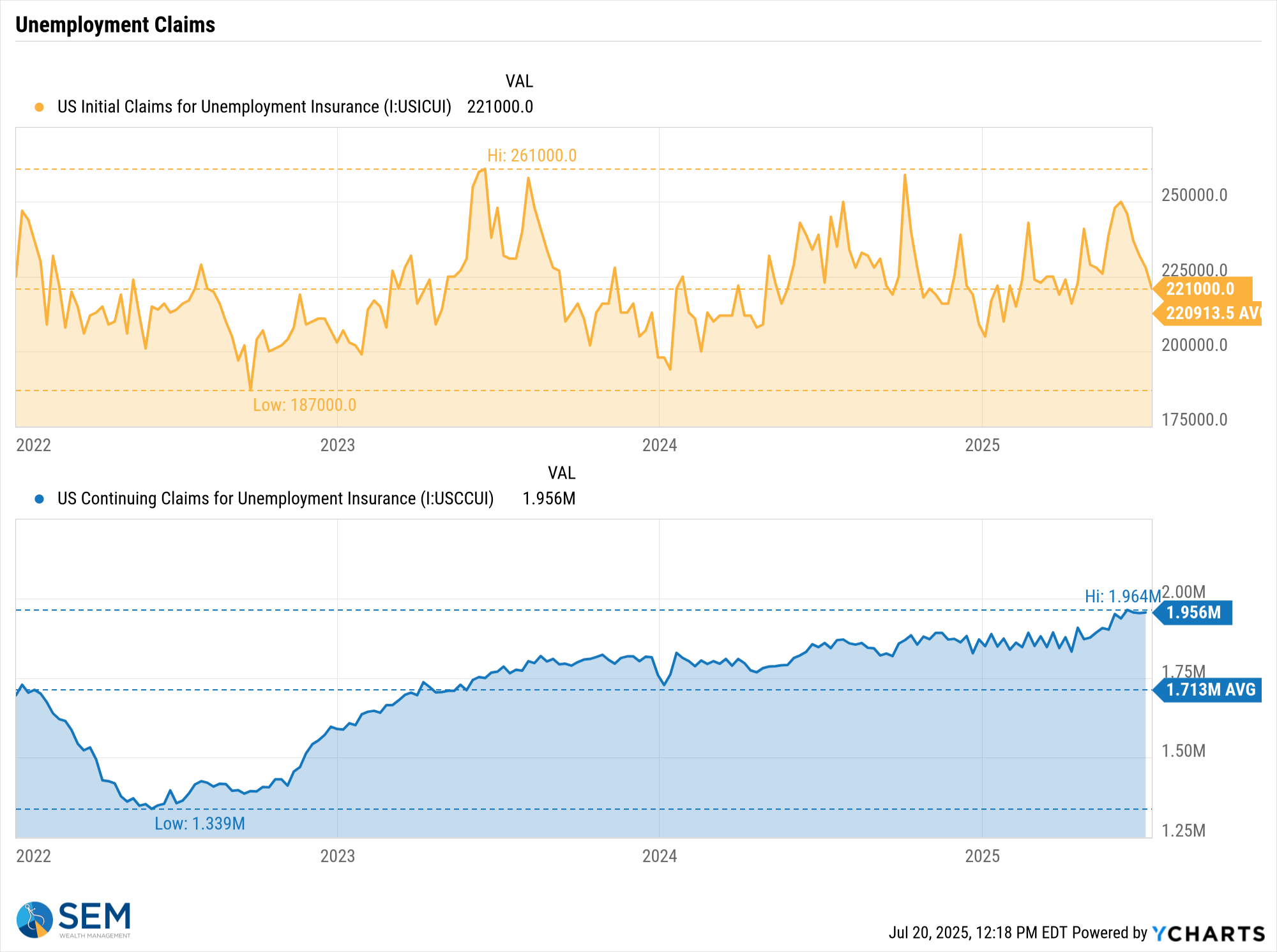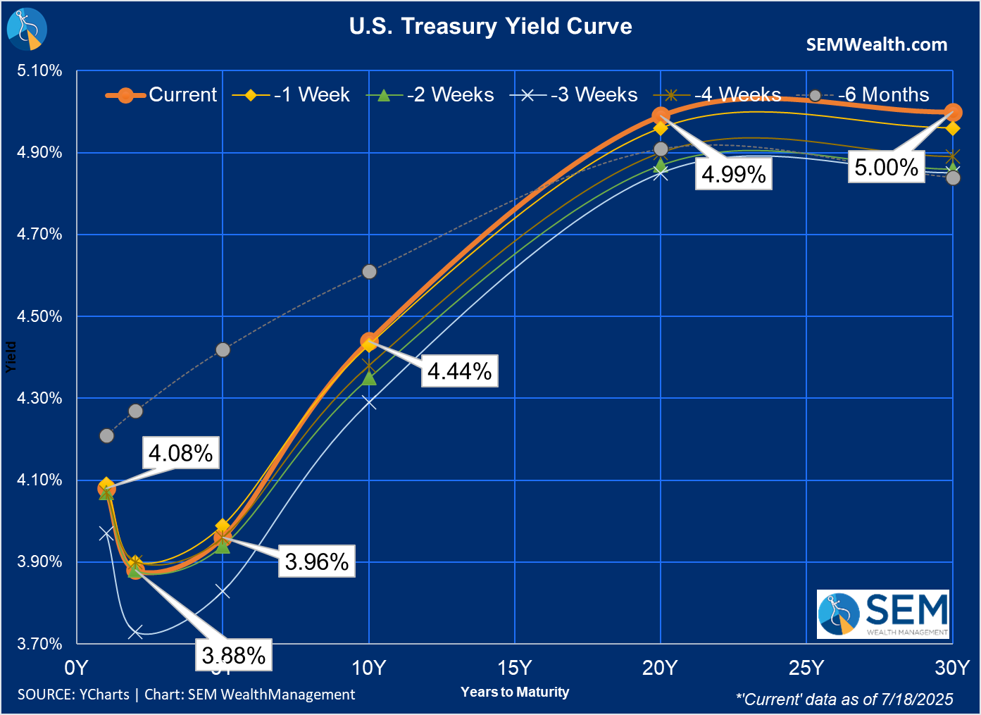 Headlines from the week: President Trump renewed his criticisms of Fed Chair Jerome Powell during. He suggested he may fire Powell over delays in rate cuts and a $2.5 billion renovation project at the Fed headquarters—even calling him “knucklehead”, “major loser”, and accusing the central bank of “choking out” the housing market (Sources: Fox Business, CBS News, Reuters 1, 2, 3, 4, 5).