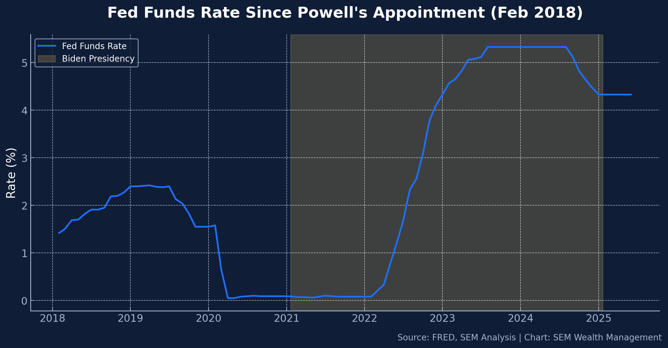Side Note 2: During the 2016 Presidential campaign, President Trump was highly critical of Fed Chair Janet Yellen saying she kept rates too low for too long to "support Obama." In reality, the Fed had been raising rates to slow the economy. The President also seems to have forgotten that he himself appointed Chair Powell, a pick highly praised by Wall Street due to his experience and data-driven approach. The President quickly lost favor with Chair Powell when the Fed raised interest rates to combat the inflationary pressure of the 2017 Tax Cuts and Jobs Act and new tariffs being imposed. The Fed then started cutting rates in 2019.
