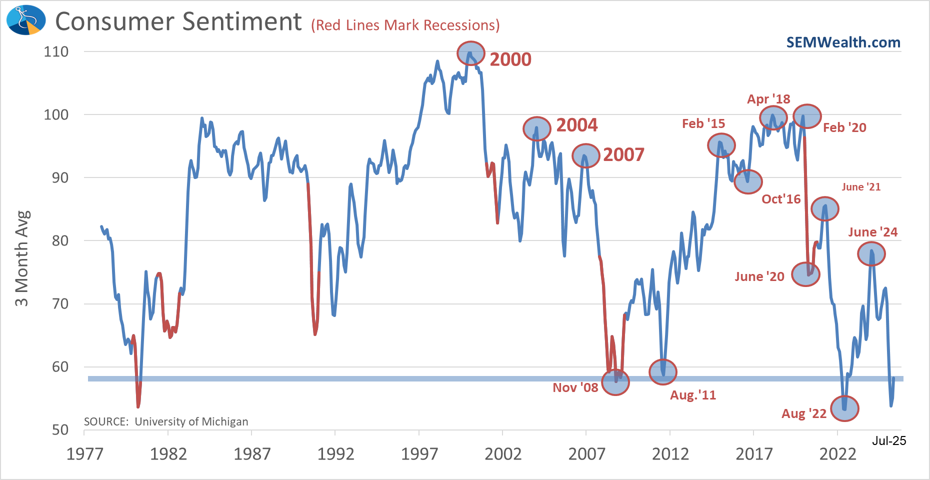 Headline: Friday saw the preliminary July University of Michigan consumer sentiment released: it rose to 61.8 from 60.7, driven by lower inflation expectations (the 1‑year is a still high 4.4% and longer‑run is at 3.6%) (Sources: Reuters University of Michigan).