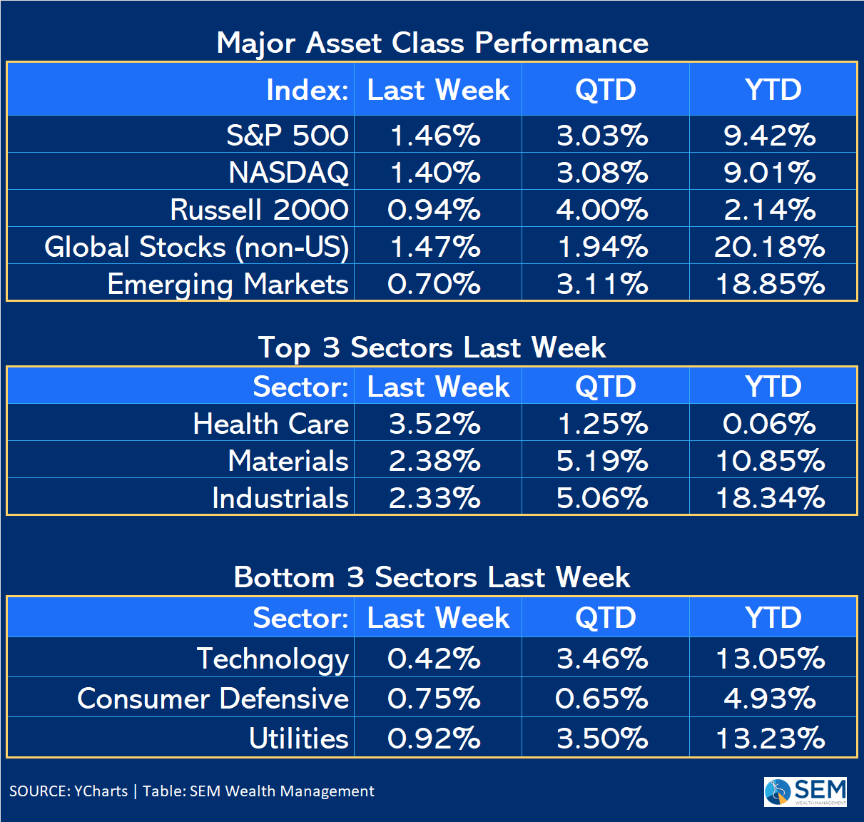 EVERY sector was up last week, obviously some more than others. I think the list of leaders and laggards tells a somewhat positive story — technology wasn't the driver of the market last week.