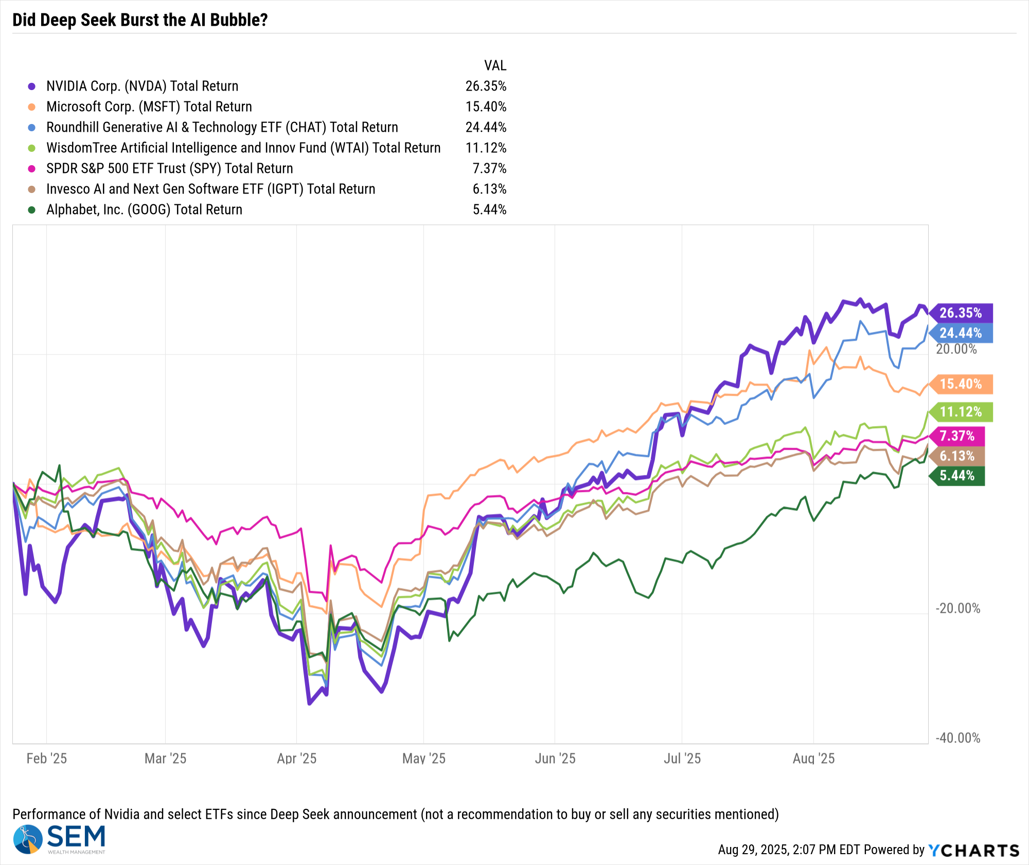 Nvidia's earnings (see Toby's take below) were strong, but the market wanted more. That led to concerns over how much MORE growth we will see in AI-related earnings. We've seen a nice run since the "Deep Seek Scare" at the start of the year, so these stocks are due for a pullback. Will it turn into more? Time will tell.