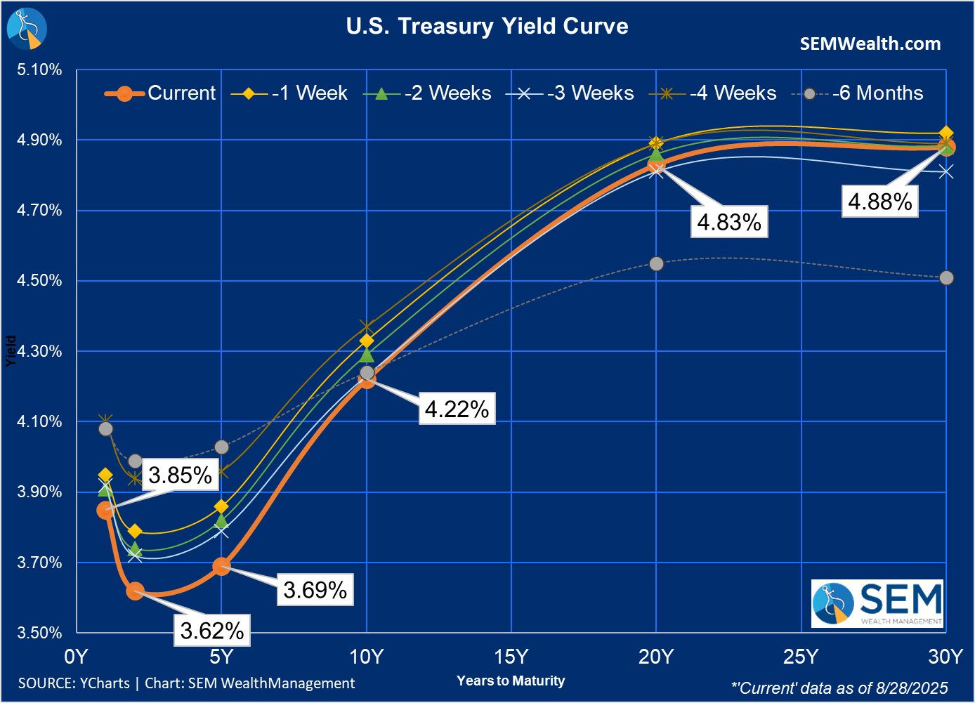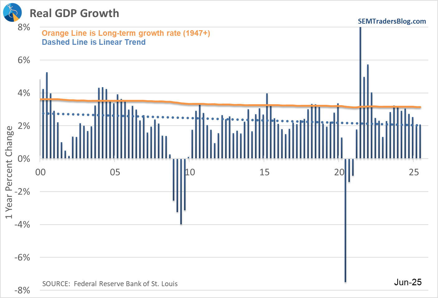8/26/25: President Trump is trying to remove Fed Governor Lisa Cook from office because of alleged cause: “Cook sought mortgages on two properties, one in Michigan, the other in Atlanta—and described both of them as her primary residence in papers.” At the moment this isn’t really impacting us, but if positions change in the Fed, then we need to watch the market reaction.