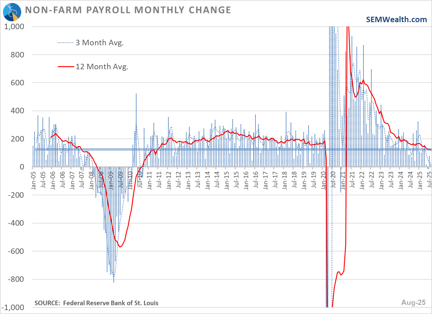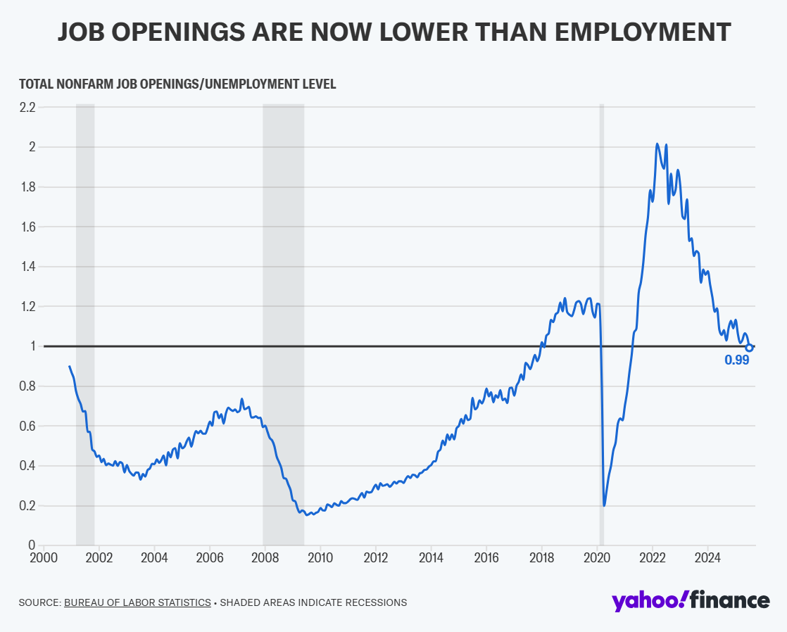 The labor market continues to show signs of strain. While the headline payroll number didn’t move much, digging into the details reveals a troubling trend. Job growth has essentially stalled over the last three months......something that historically happens just before or during a recession. We’re not seeing a spike in layoffs, but if you’re looking for a job (or trying to reenter the workforce), it’s getting harder to find one. The market initially rallied on the weak report, but as we’ve been saying for months, lower interest rates won’t fix the structural issues in the labor market. There’s a growing mismatch between the jobs available and the skills of the people looking......and that’s not something the Fed can solve with a rate cut.
