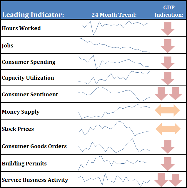 The Hours Worked component of the report, which has a much higher predictive value for economic growth remains somewhat flat – no change over the last 2 months and up 1% over the past year. This indicates we do not yet have cause for concern.