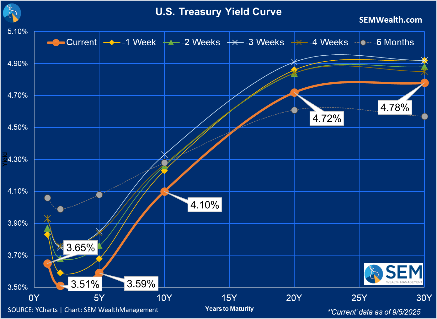Keep in mind, over the last 6 months, shorter-term rates are down 35bp-40bp. During the same time all economic indicators have been moving to "stall speed". During the same time, 10-year rates are only down 10-15bp. The 20-30 year Treasury yields are actually higher than they were 6 months ago.