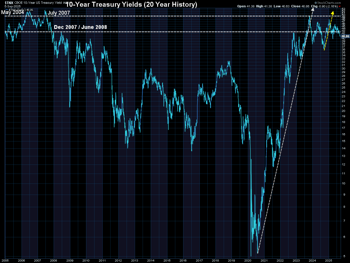 The drop in yields on Friday was encouraging in terms of dropping yields back near 4% on the 10-year.