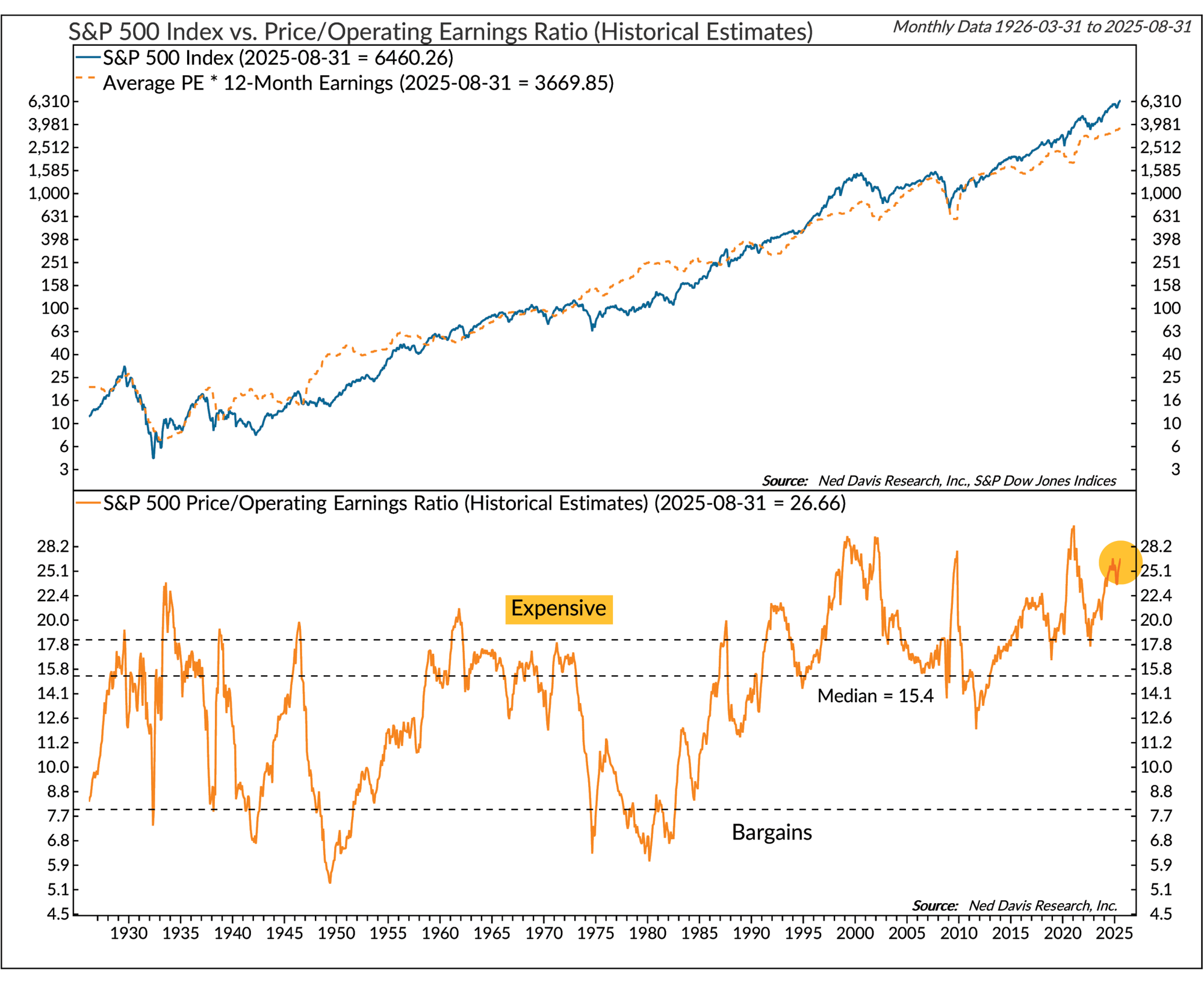 By nearly all accounts, the stock market is at those levels, meaning if you buy & hold stocks, you should EXPECT returns of less than half the long-term average over the next 5-10 years. Here are some examples from NDR illustrating how expensive stocks are at the moment.
