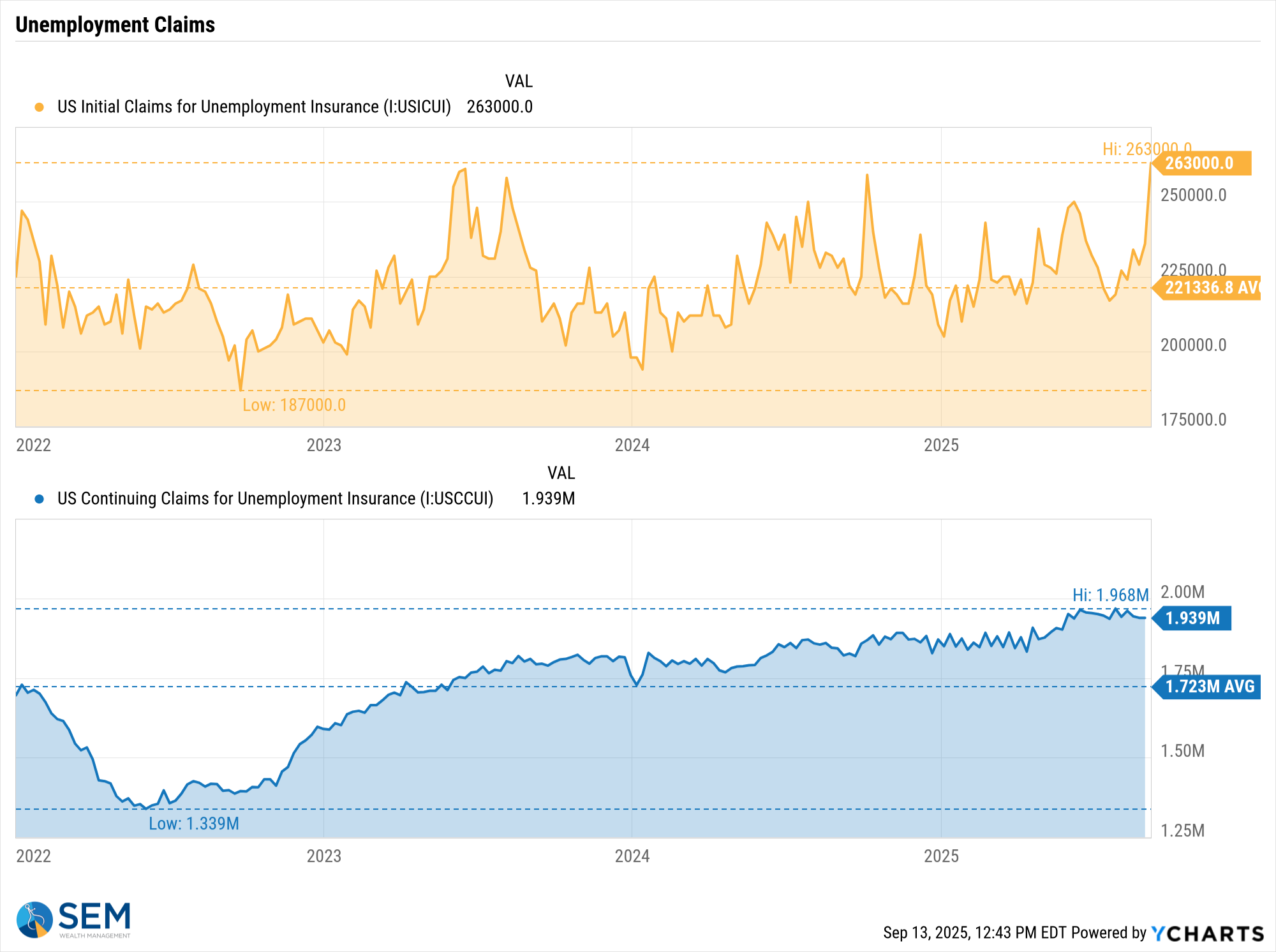 The Fed's bigger concern comes from the labor market. I've been saying since late spring, "if you lose your job, you're having a hard time finding a new one". Not a lot of layoffs were occurring, but that changed last week as Initial Jobless Claims jumped to the highest level since 2021.