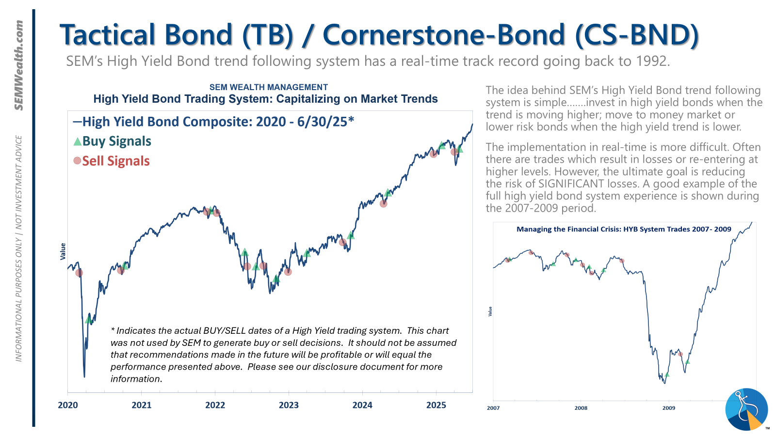 Tactical (daily): The high yield system has been invested since 4/23/25 after a short time out of the market following the sell signal on 4/3/25.