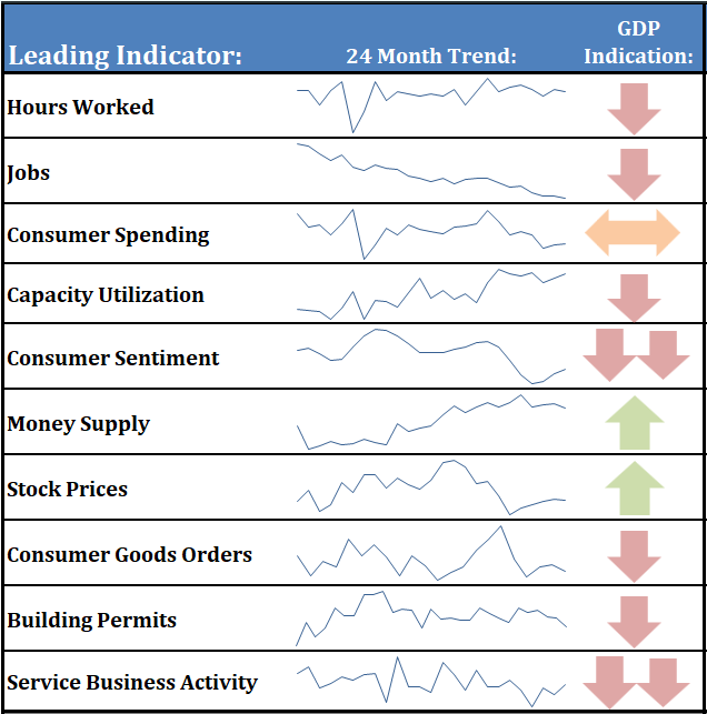 Friday was supposed to be the end of our economic data month with the release of the monthly jobs report. of course with the government shutdown any of their releases are postponed. This doesn't mean our model won't function (remember we dealt with this in 2018/2019.) One data point does not change our model. It focuses on the trends and we have enough privately provided data sources to still measure the TREND in the economy. It was decelerating going into the month and by all accounts decelerated even more in September (the ADP Private payrolls data confirmed this.) Here's how our dashboard looks currently. You will notice two positive arrows for the first time in three months — stock prices and Money Supply.