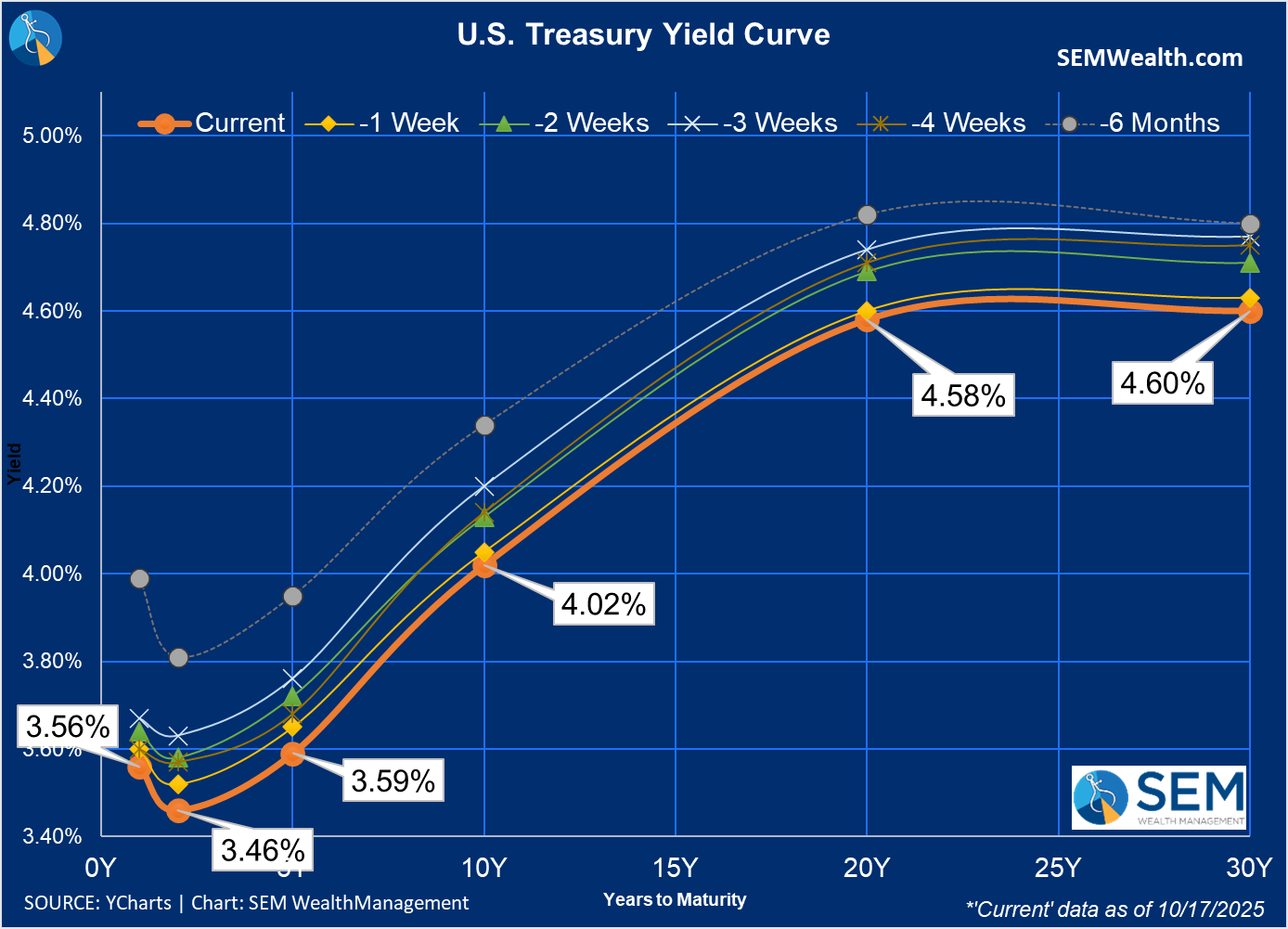 The entire yield curve shifted lower last week with yields hitting 6 week lows across the board.