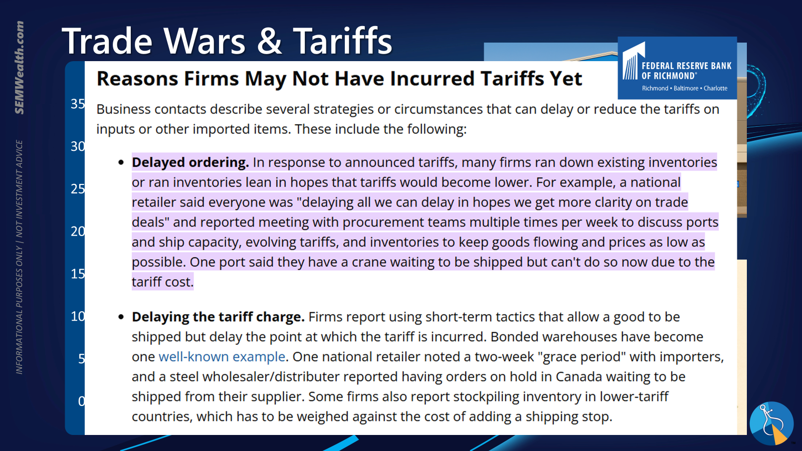 I included this section of the Richmond Fed's latest economic summary posted last week that reminds us we have yet to see the real impact of the tariffs.