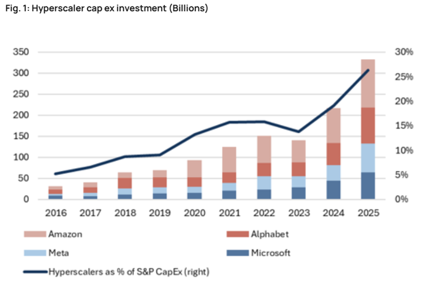 Most of that spending is coming from companies identified as "hyperscalers" – those pouring most of their operating cash flow into capital expenditures.