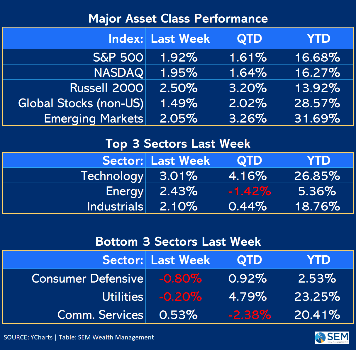 It was another fun week for investors, especially those with tech-heavy portfolios. Despite a mid-week, one-day sell-off, the S&P 500 gained nearly 2% for the week.