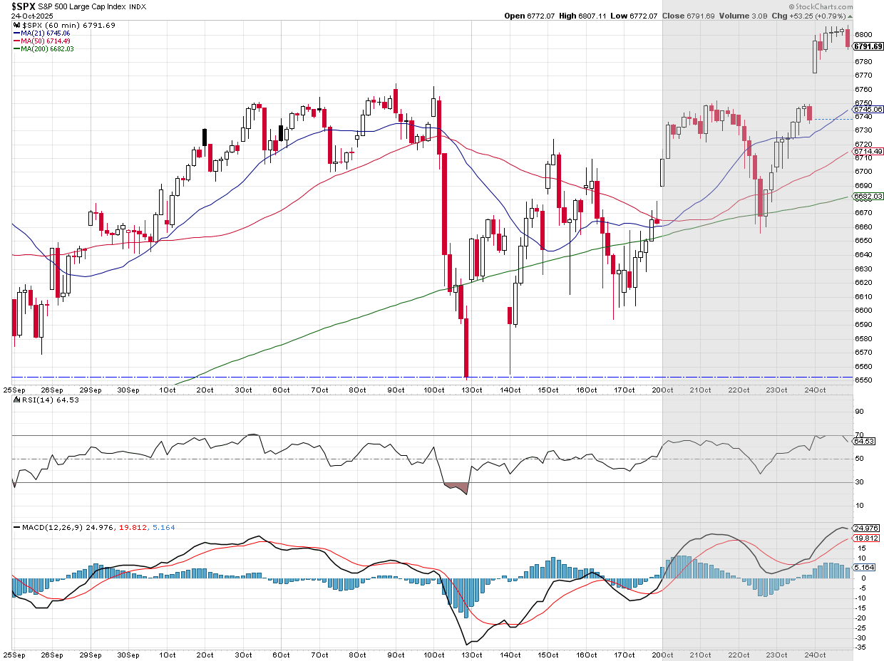 Finally, two weeks ago a skeleton staff at the BLS was called back into service to give us the September CPI number last Friday. (This was needed so the Social Security Administration could finalize the cost of living adjustment (COLA) for 2026.) Unsurprisingly CPI came in lighter than expected. This should allow the Fed to cut rates again on Wednesday of this week.