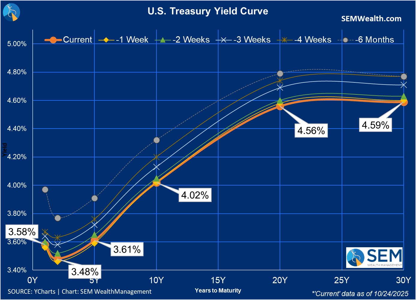 Turning to bonds, it was a quiet week as the yield curve ended about where it started across all maturities.