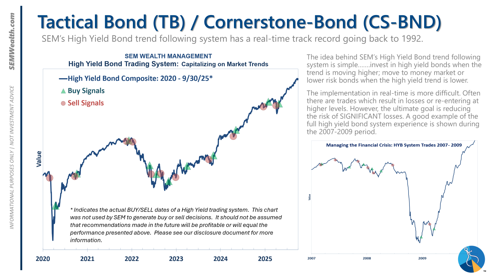 Tactical (daily): The high yield system has been invested since 4/23/25 after a short time out of the market following the sell signal on 4/3/25.