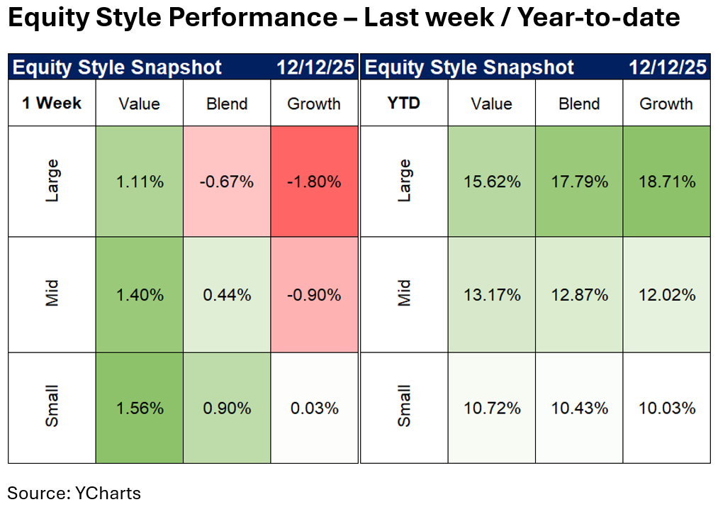 I'm including an additional table this week to illustrate the rotation from growth to value we saw last week: