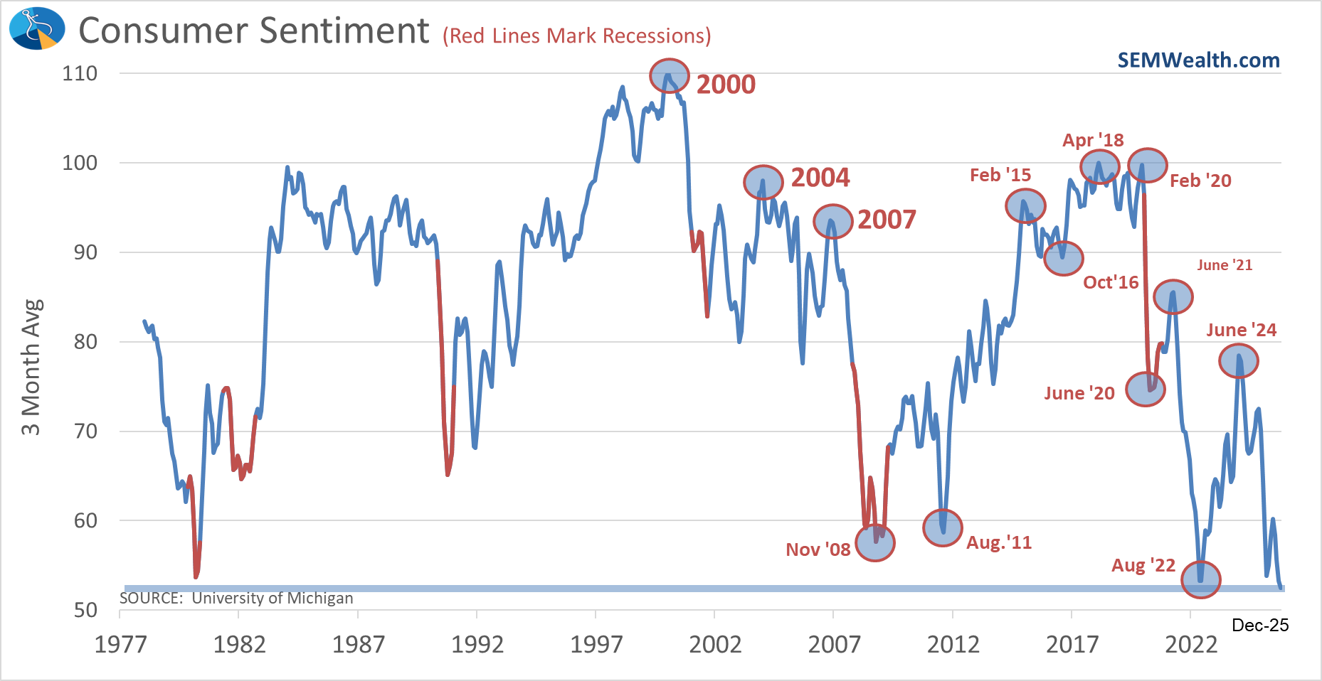 The final piece of data we received last week was the December Consumer Sentiment report. The 3-month average has now fallen to the lowest level on record – eclipsing the lows of August 2022 (when inflation was at 8%) and 1981 (when inflation was 11%).