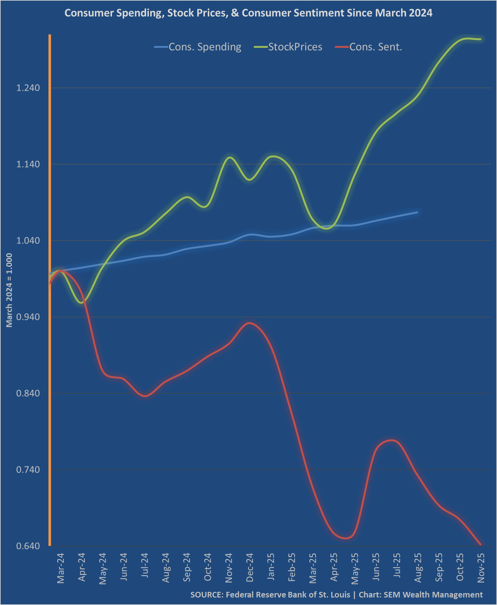 The Federal Reserve often says they are "data dependent". This often leads to confusion and hyper-focus on every data release as the market speculates what it means for the next Fed meeting. Most of November saw a drop in stock prices after the Fed pushed back on the thought of another rate cut in December. Then a few key players on the Fed softened their stance and without any sort of "data" to work from decided to perform a "safety" cut in December. The thought was it wouldn't add to any sort of inflation pressure and could help business owners and consumers feel as if the Fed was trying to help the economy.