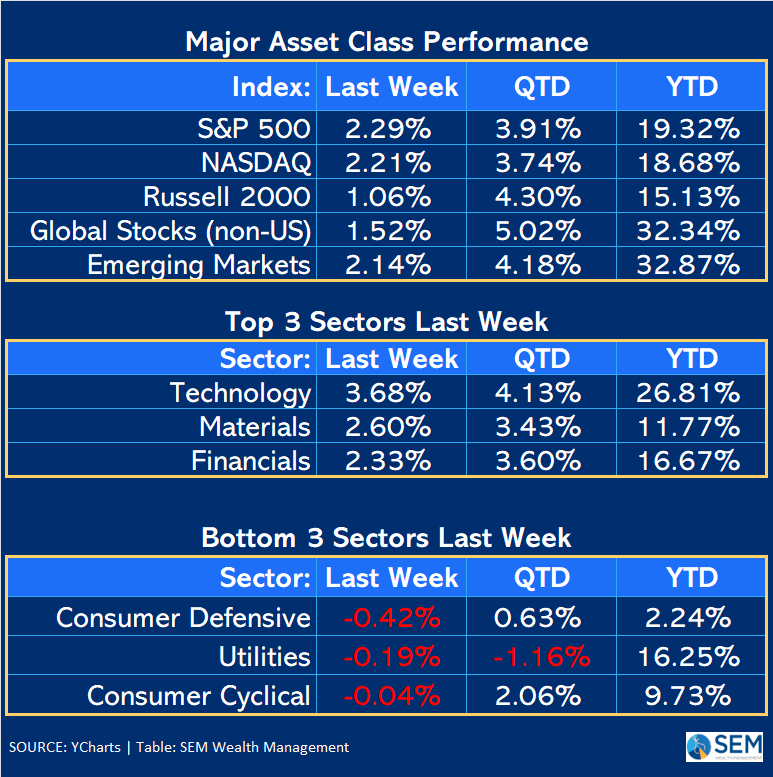 As always, through the good times and bad for the market and economy we will be here, watching the data and adjusting accordingly. Human nature is the reason this works and has been the key for SEM's 30+ years of experience through all types of cycles (up and down).